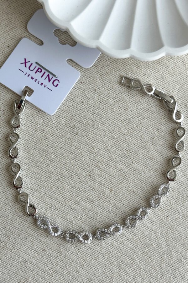 Xuping Taşlı Sonsuzluk Zincir Kadın Bileklik – 17+2 cm | Gümüş Renk Kararmaz Xuping Takı