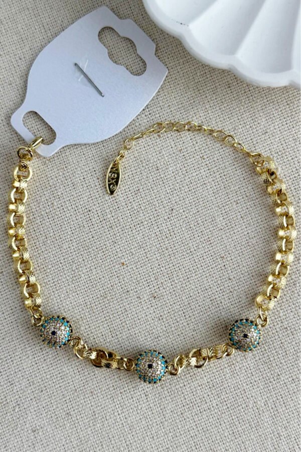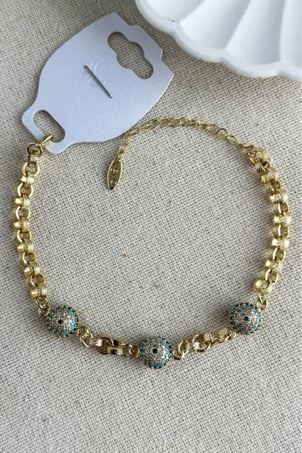 YSX 14K Taşlı Nazar Toplu Zincir Kadın Bileklik 18 + 3 cm Altın Renkli YSX Takı Bileklik